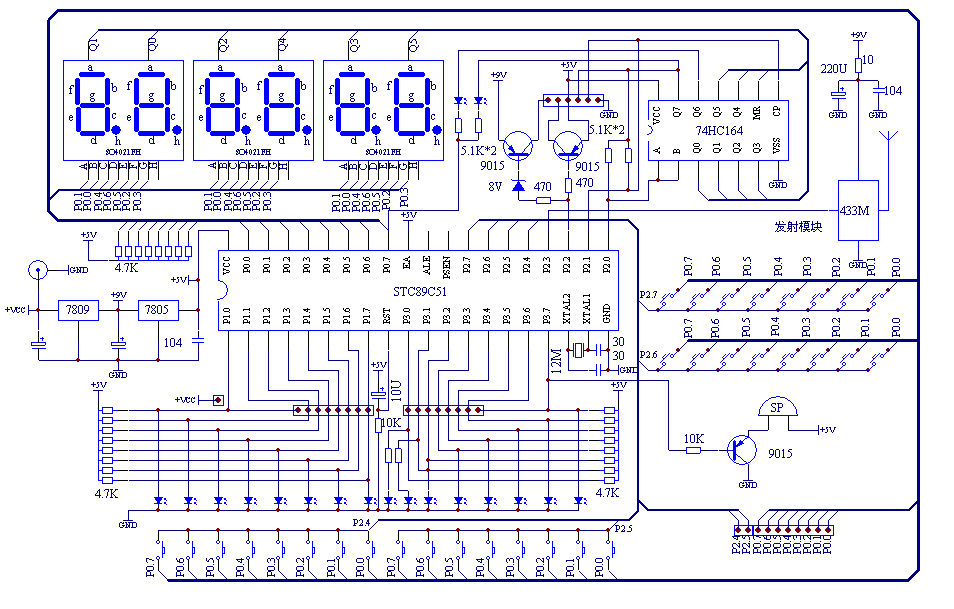 电路板光板,使用T89C51、52、STC89C51、52等相兼容单片机芯片。需要你自己写程序。
