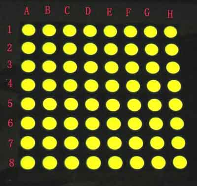 黄绿色点阵共阴,全新8×8,发光尺寸:Φ5mm,发光颜色:单色,黄绿色,透明,表面黑色。总点数:64,表面大小 :60.2×60.2×9.2(mm),双列16脚,位距:2.54mm。
